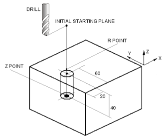N25 G83 G99 Z-61 Q20 R1 F10 (Peck drilling cycle on & returning to R point)